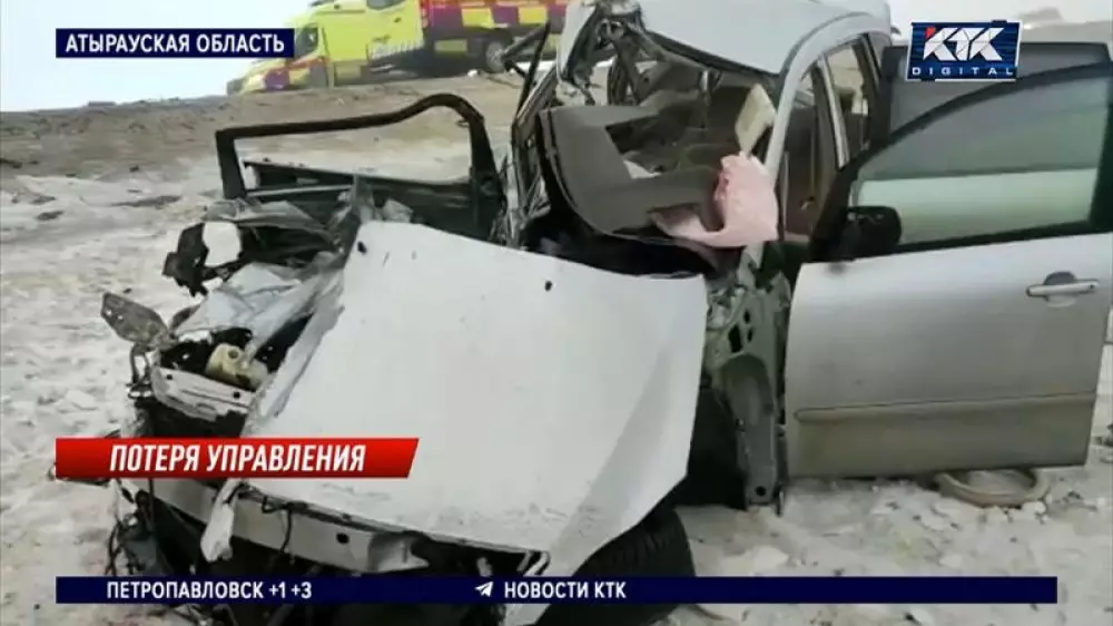 Авария произошла на трассе Атырау - Астрахань утром 28 февраля. Предполагаемый виновник - водитель автомобиля Toyota Ipsum. По данным полиции, он не справился с управлением, выехал на встречную полосу и столкнулся с грузовиком.