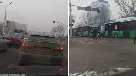 Публикация с видео появилась на странице kris.p.almaty.official в Instagram. На кадрах видно большое скопление машин. Отмечается, что видео сняты на пересечении улиц Толе би и Утеген батыра.