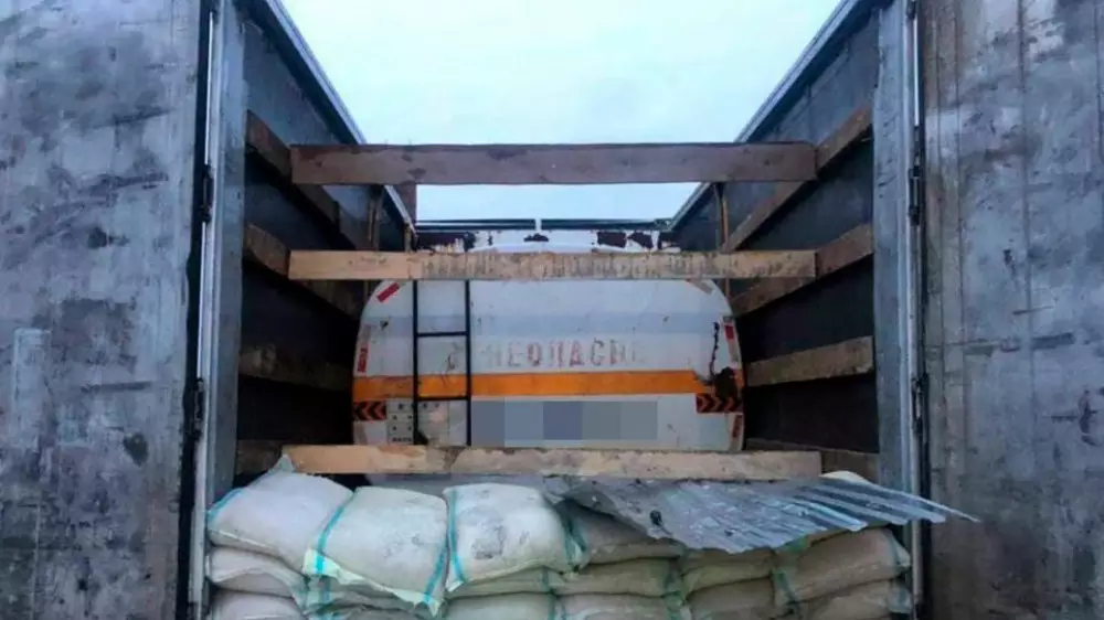 "Для незаконного вывоза организаторы укрыли емкости с ГСМ среди мешков цемента, при внешнем осмотре двух грузовых машин цистерны были обложены мешками с опилками, по товаросопроводительным документам груз оформлен как "сборный", - сообщили в КНБ.