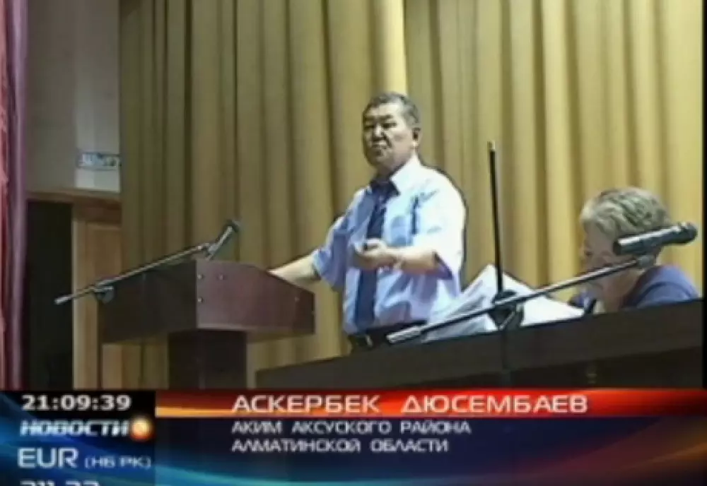 Причиной возмущения Аскербека Дюсембаева стали жалобы сельчан на местных чиновников. "Мне хоть КТК, хоть "Время", хоть "Караван"! Я просто выключу телевизор, если надо будет. Как вам не стыдно такое говорить. Есть некоторые, которые ничего не делают, просто лежат и ходят на телевидение жаловаться. Хоть 10 раз выступайте по телевидению. Мы молчать тоже не будем!" - заявил аким.