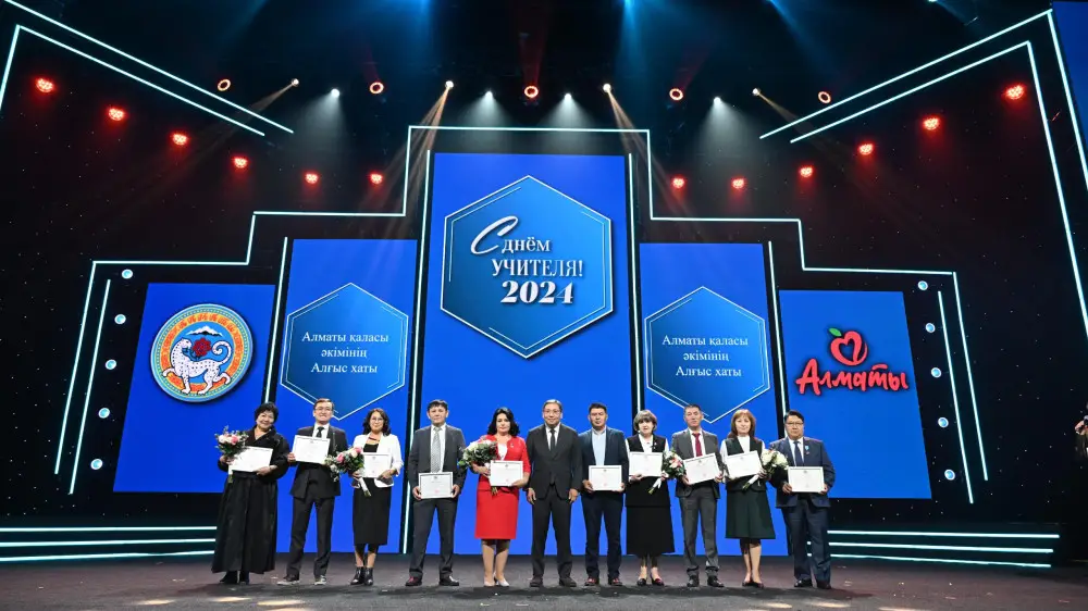 В ходе мероприятия глава мегаполиса наградил победителей городского конкурса "Алматы ұстазы". Всего в конкурсе участвовали 2 тысячи человек, это рекордное количество участников. Лучшими признаны 7 педагогов: Ернұр Бейсембаев – учитель истории школы-лицея №173, Еркеназ Баймұрат – учитель информатики школы-гимназии №140, Суннатулла Каумбаев – учитель химии специализированного лицея №92, Айдана Айдарова – учитель биологии специализированного лицея №178, Азизхан Умиралханов – учитель математики гимназии №159, Анастасия Благодатская – учитель русского языка и литературы средней школы №70 и Дулат Сұлтанбек – учитель казахского языка и литературы специализированной школы №12.