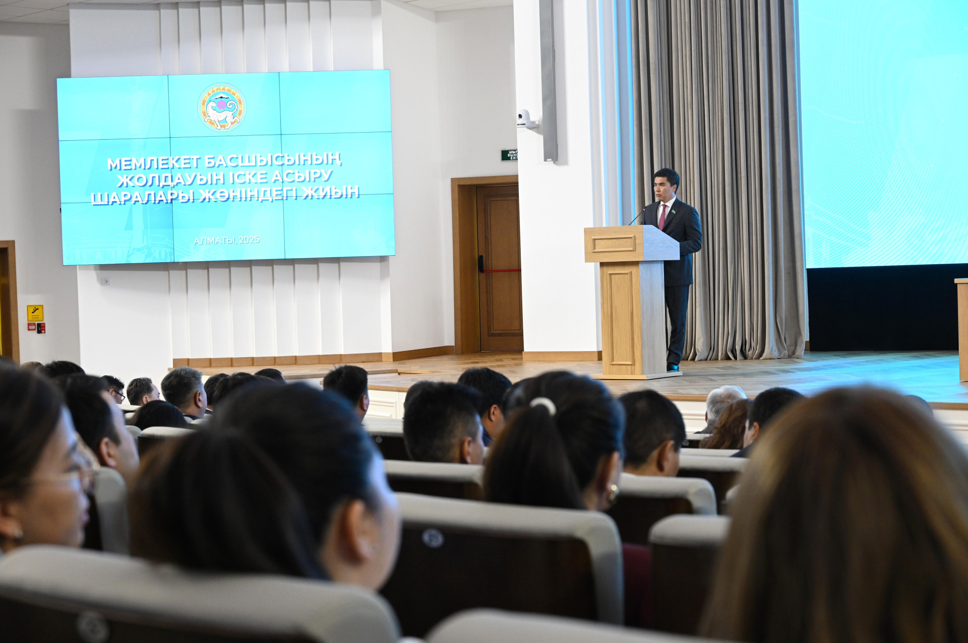Аким Алматы Дархан Сатыбалды встретился с активом города и обсудил реализацию задач, обозначенных Президентом Республики Казахстан Касым-Жомартом Токаевым в Послании народу Казахстана.