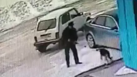 На кадрах видно, что мужчина вышел из автомобиля с оружием в руках и направил оружие в сторону собак.