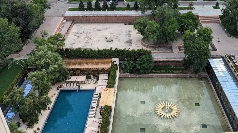 В администрации знаменитой алматинской гостиницы "Казахстан" прокомментировали строительство бассейна на чаше фонтана, передает корреспондент Tengrinews.kz.