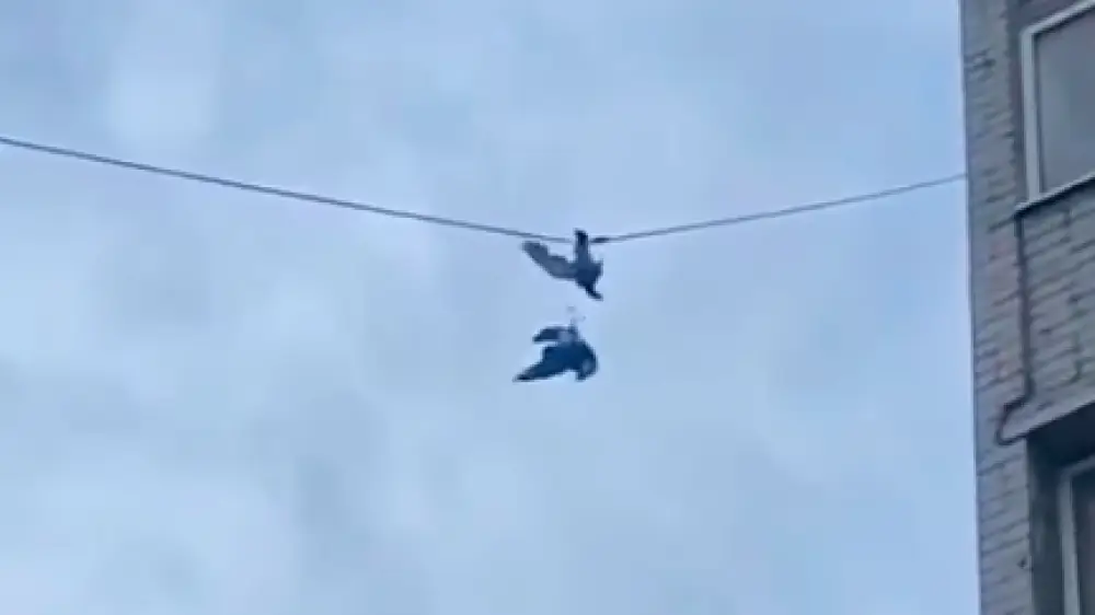 Необычный случай произошел в 12-м микрорайоне города. Жители заметили двух голубей, запутавшихся в проводах возле многоэтажного дома и не способных взлететь. Они незамедлительно сообщили об этом в службу спасения.