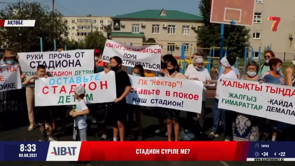 Aibat мәліметінше, Ақтөбедегі шағын ауданда орналасқан жалғыз спорт және демалыс орнына көпқабатты үй салынғалы жатыр. Тұрғындар стадион аумағын өлшеп жүрген құрылысшыларды бір ай бұрын байқапты. Жердің жекеменшікке сатылып кеткенін де сол кезде білген. Жоспар бойынша 10 мың шаршы метр жерде үлкен кешен салынбақ.