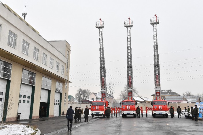Пожарные подразделения Алматы пополнились новой спецтехникой, закупленной из средств местного бюджета. В гарнизон Департамента по чрезвычайным ситуациям переданы три пожарные автолестницы АЛ-32, восемь автомобилей быстрого реагирования, четыре единицы пожарных автоцистерн и другое.