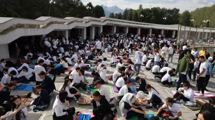 По случаю Дня тогызкумалак, более 2000 алматинских учеников единовременно сыграли в игру тогызкумалак.