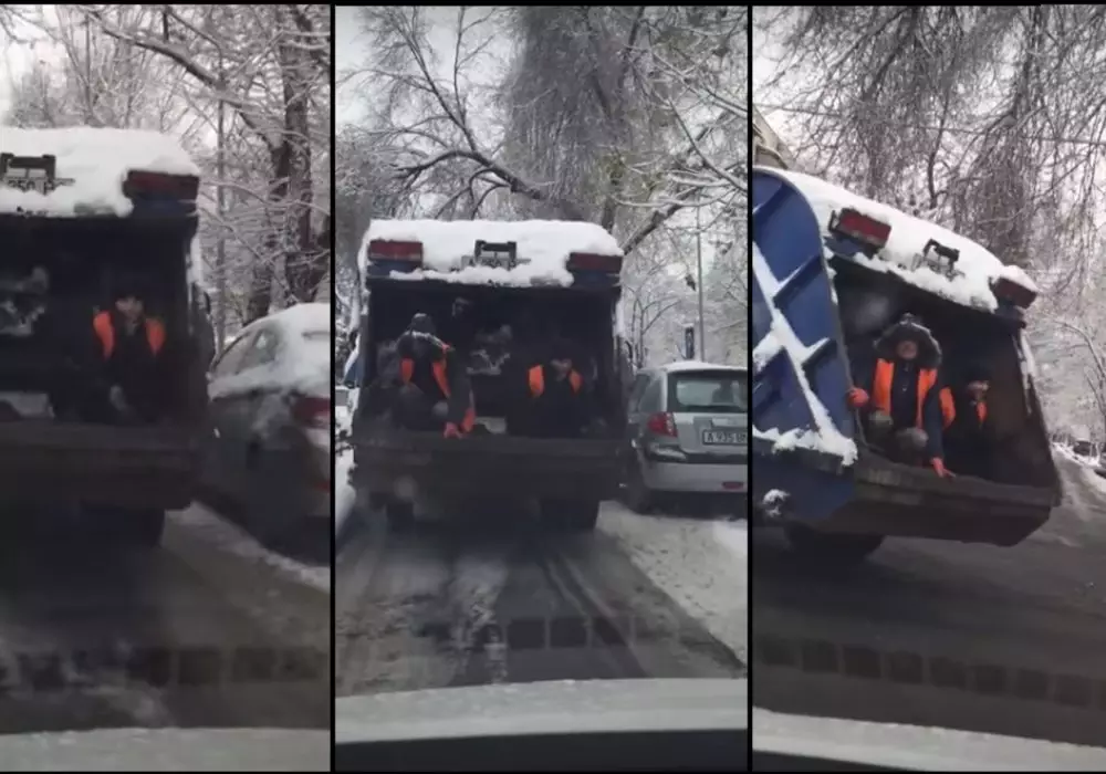 Накануне в Сети появилось видео, которое снял один из жителей Алматы. На кадрах видно, как двое молодых людей, работающих в коммунальной службе, едут внутри грузовика и руками раскидывают песок по улице. "Техника на грани фантастики. Два солдата из стройбата заменяют экскаватор", - отметил автор ролика.