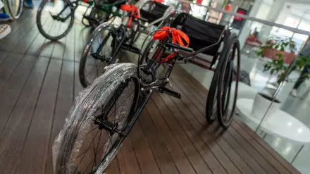 "Я не хочу отставать ни в чем, легкие открылись и появилось второе дыхание и все, я летел! Я очень давно хотел начать заниматься бегом, и нужна была коляска по размерам для каждого бегуна. Здесь разные коляски, подберем сейчас и начну тренироваться. Это очень хороший подарок!"