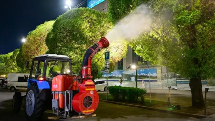 Как сообщалось ранее, работы осуществляются в ночное время: отсутствие прямого солнечного света способствует более длительному действию средств на вредителей за счет замедленного испарения.