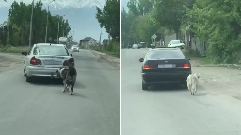 В Алматы собак привязали к едущим машинам и заставили бежать рядом Кадры из видео
