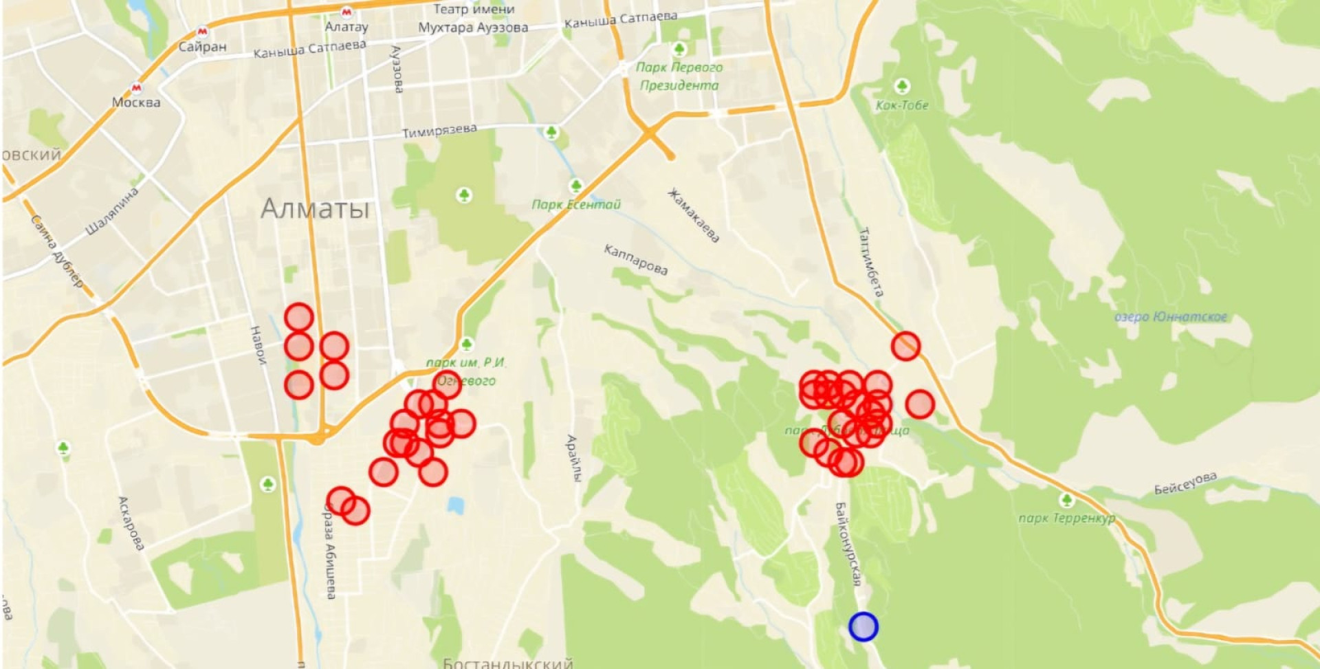 - проспект Райымбека, 136; улица Желтоксан, 36;