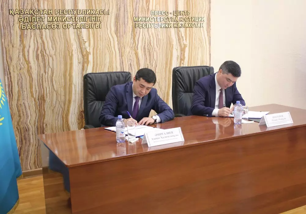 Министерство юстиции и Агентство по противодействию коррупции подписали устав по проекту "Адал алаңы". Документ скрепили подписями ответственный секретарь МЮ РК Азамат Амиргалиев и первый заместитель председателя Агентства по противодействию коррупции Олжас Бектенов.