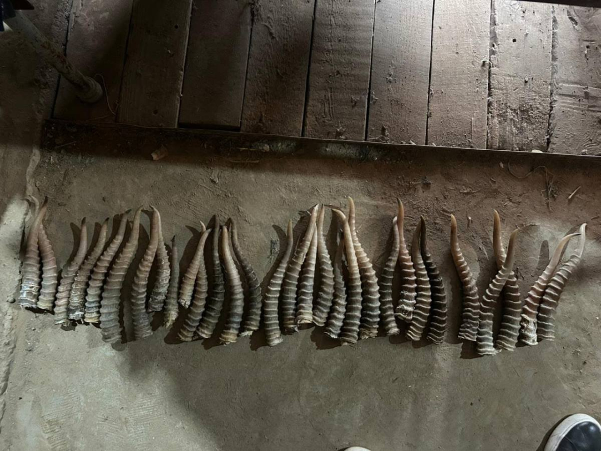 "В помещении сотрудники правопорядка обнаружили самодельное стреляющее устройство типа "поджиг", 2 гладкоствольных ружья, 2 обреза, 104 патрона различных калибров, а также 30 рогов сайги", - указывается в публикации.