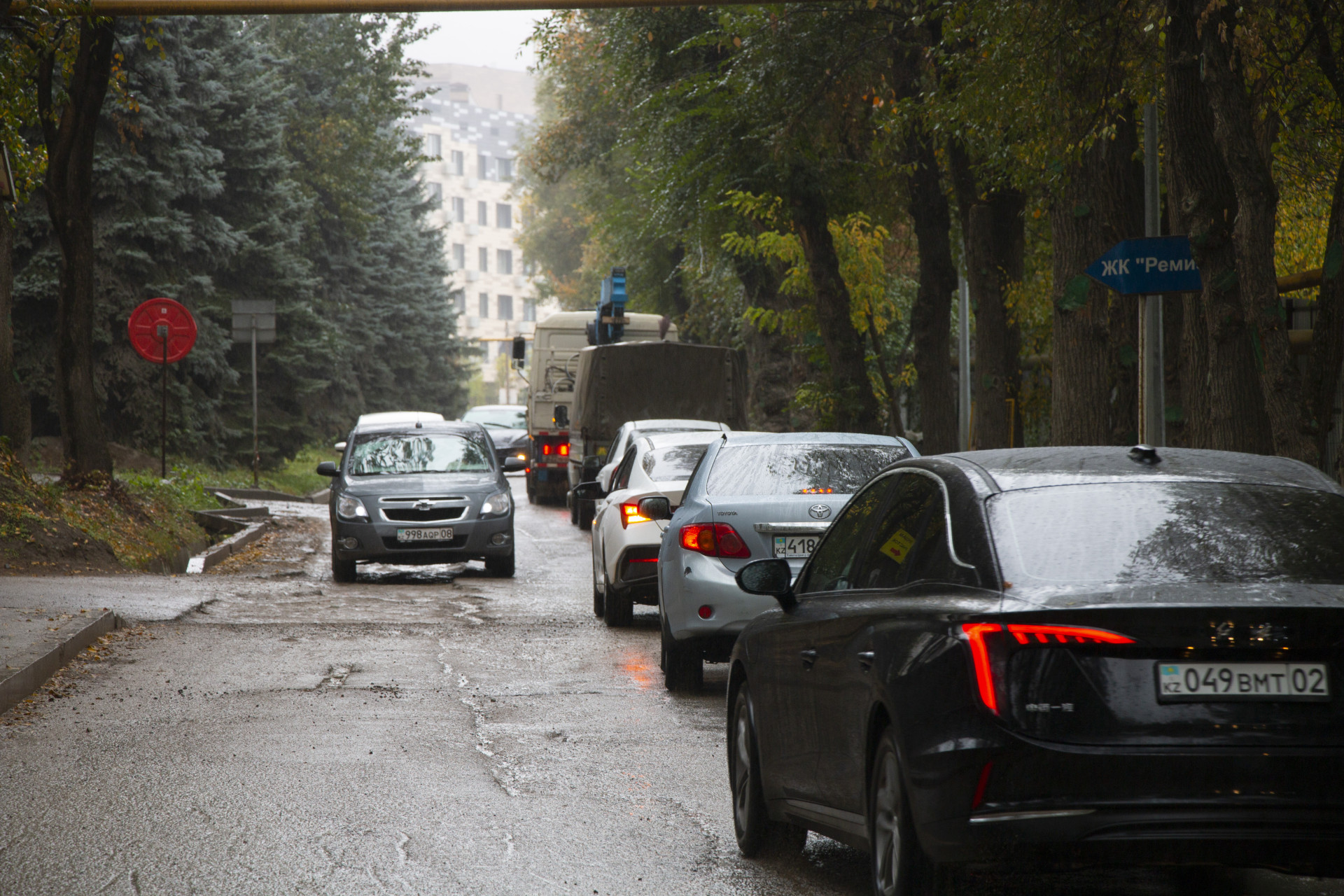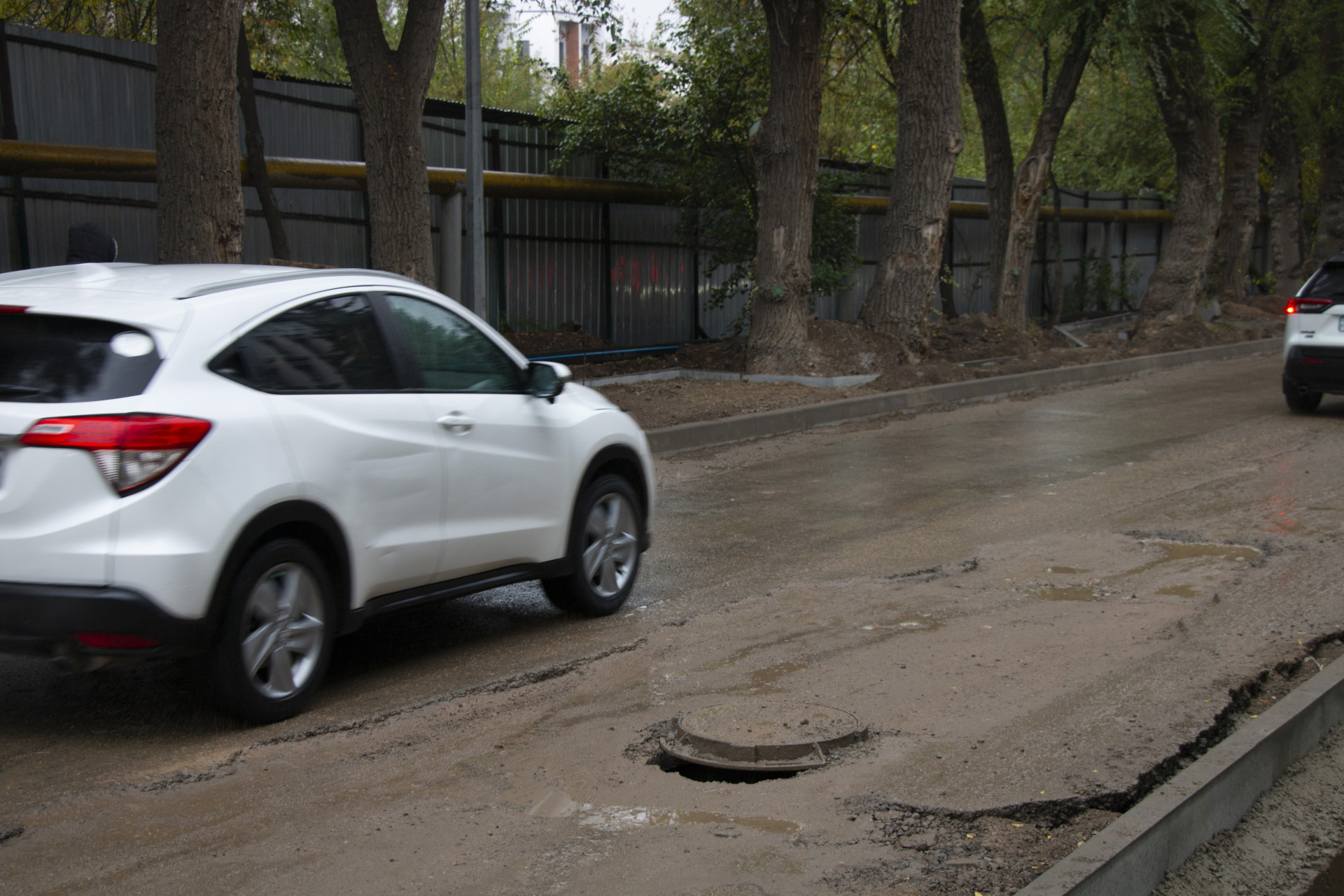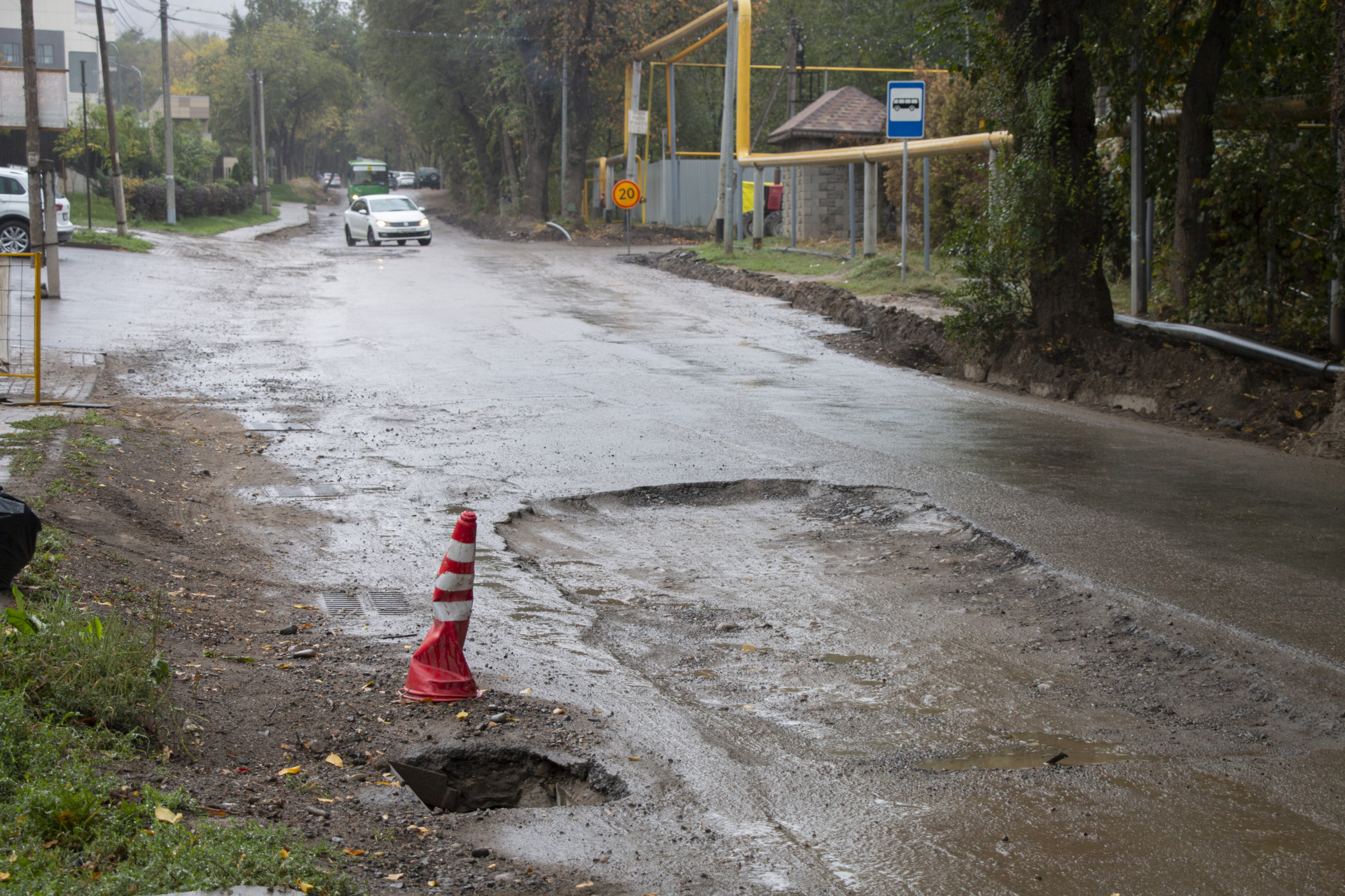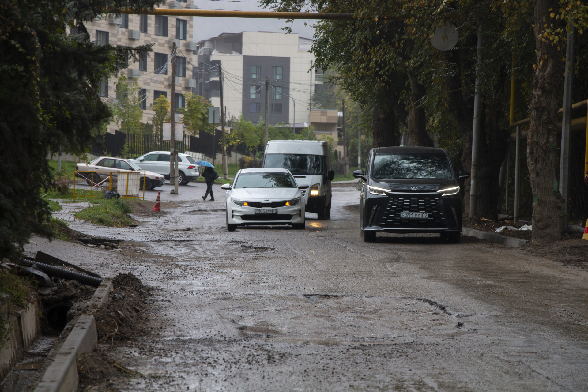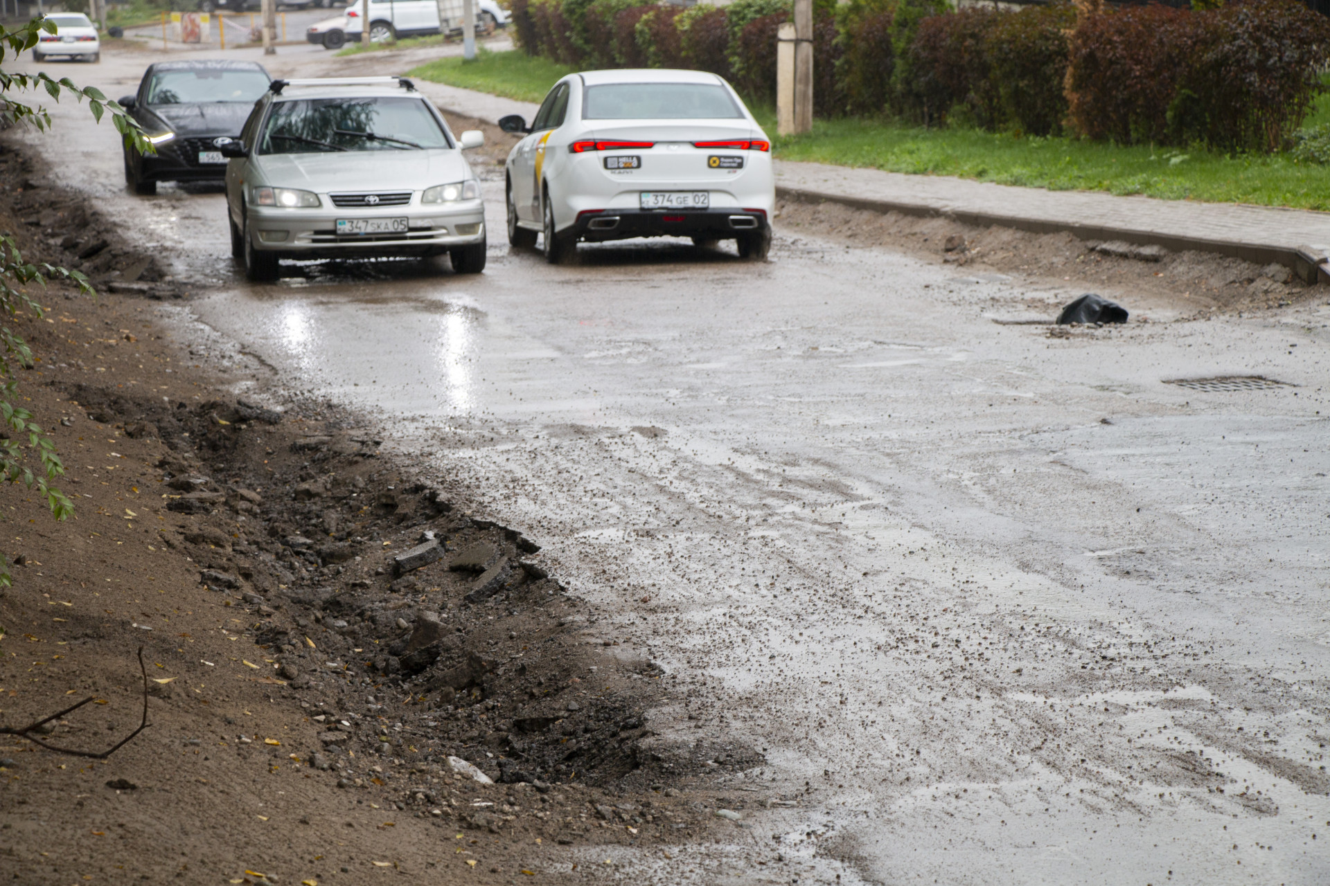 Похожая ситуация наблюдается на дороге рядом с жилыми комплексами Sakura и Grande Vie. Недвижимость в этом районе дорогая и доступна не каждому казахстанцу. Однако из-за грязи, разбитых дорог и проблем с водой сложно сказать, стоит ли того жизнь в этом районе.