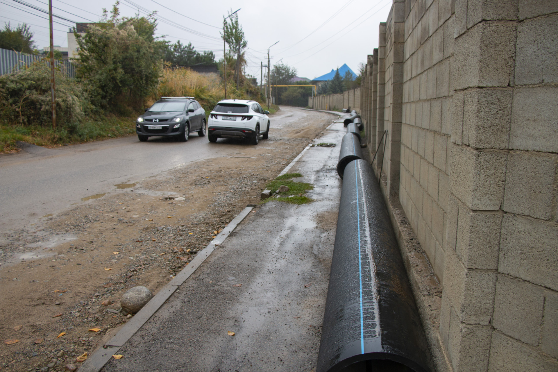Работы в микрорайоне Ерменсай начались ещё в апреле по линии чрезвычайной ситуации. Всё из-за того, что этот район испытывает катастрофические проблемы с водой. Трубы начали тянуть в экстренном темпе от проспекта Аль-Фараби вверх по улице Ушкемпирова до предгорных районов.