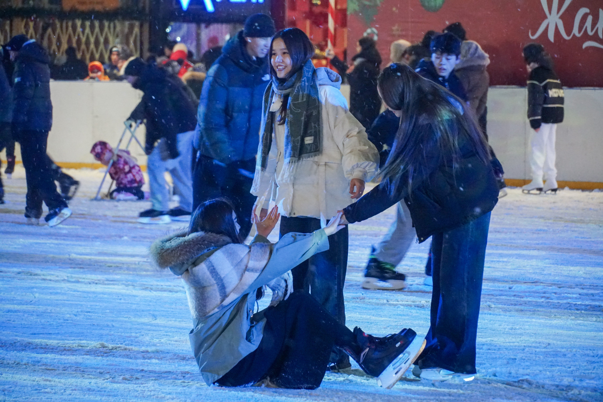 Площадь "Қазақ елі" в этом смысле стала одним из самых ярких примеров. Здесь праздник не закончился после зажжения ёлки: музыка продолжала звучать, каток не пустел, люди не спешили расходиться.