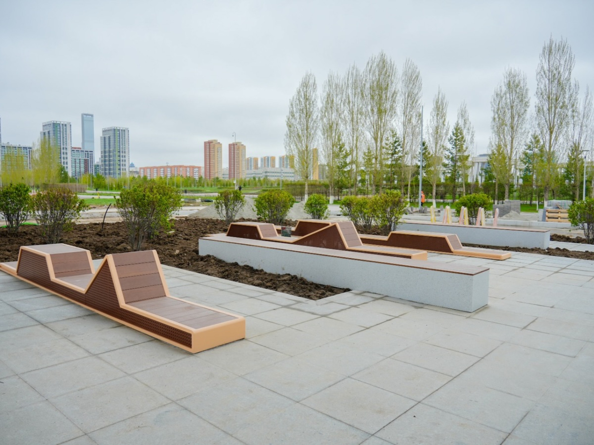 На сегодняшний день ведутся работы по укладке асфальтобетонного покрытия и благоустройству со стороны проспекта Тәуелсіздік.