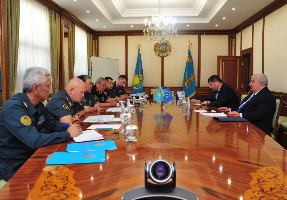 В Министерстве обороны Республики Казахстан состоялась встреча главы военного ведомства генерал-полковника Сакена Жасузакова с генеральным секретарем Организации Договора о коллективной безопасности Юрием Хачатуровым.