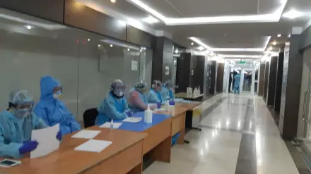 Как сообщается, прилетевших из-за границы размещают в гостиницах, развернутых под медицинские стационары, где медработники сразу берут анализы.