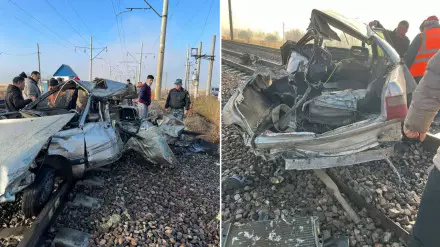 В результате столкновения автомашины с поездом погибли шесть человек в Жамбылской области, передает корреспондент Tengrinews.kz.
