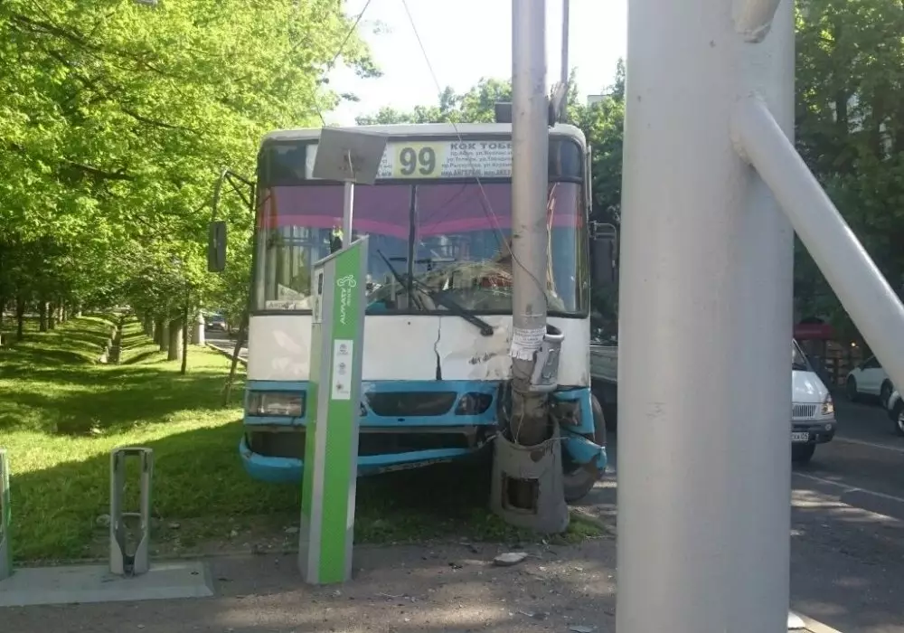 Автобус подрезала легковая машина, из-за чего автобус врезался в столб. Об этом сообщил директор ТОО "АвтоАлма Транс" Марат Алиев, передает корреспондент Tengrinews.kz.