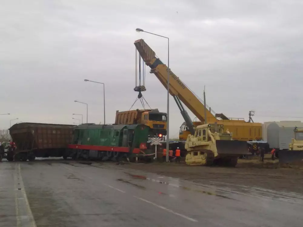 Инцидент произошел 7 октября в 5 часов утра на трассе Астана-Караганда на неохраняемом переезде. По информации компании, при столкновении грузового самосвала и 20-ю зерновозами пострадал водитель КамАЗа. Он доставлен в больницу. Жертв нет.