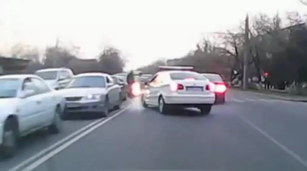 Переходивший дорогу по пешеходному переходу мужчина едва не оказался под колесами автомобиля дорожной полиции в Алматы, передает корреспондент Tengrinews.kz. Видеозапись события, произошедшего, судя по дате видеорегистратора, 28 марта 2013 года в 19.00, разместили в Интернете очевидцы. Представители ОО "Общество содействия автомобилистам" ("ОСА") по факту инцидента отправили обращение на блог министра внутренних дел.