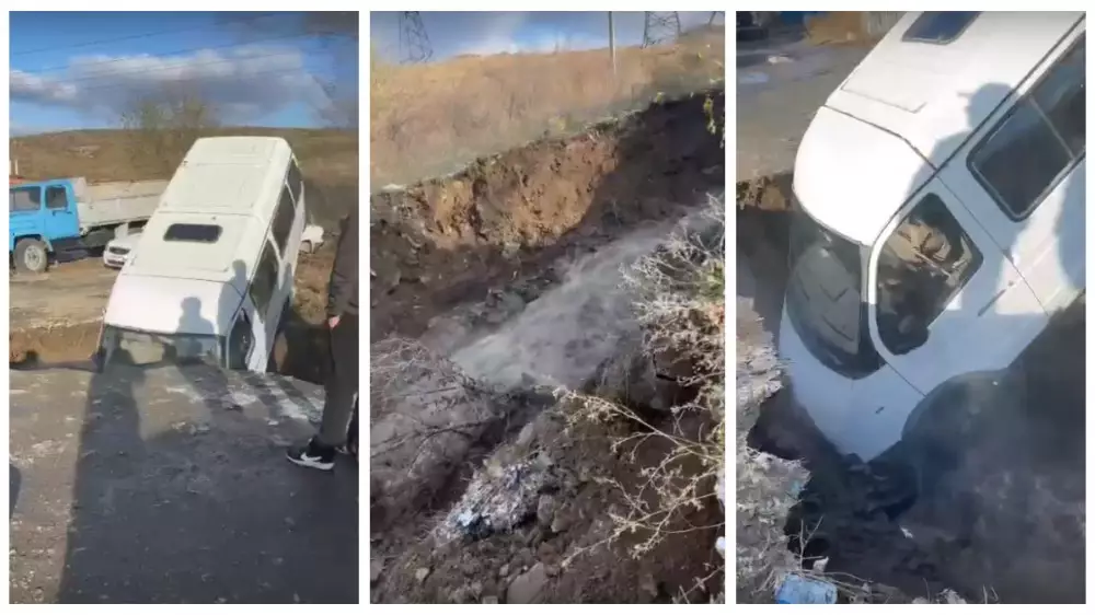 Автомобиль провалился "под землю" на улице в Усть-Каменогорске Кадры из видео