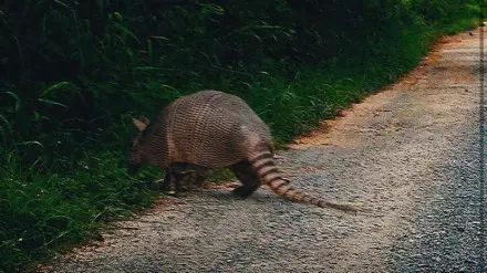 В Instagram житель Алматы написал, что броненосец выбежал на дорогу перед его автомобилем. Водитель успел затормозить и сделать снимок животного, убегающего в кусты на другой стороне дороги.