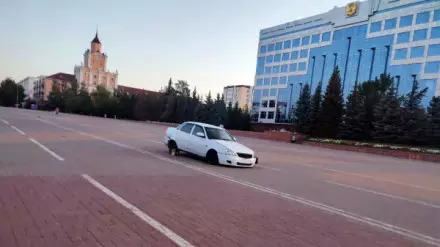 На площади перед областным акиматом оказалась белая Lada Priora с пробитыми колесами, которые, вероятно, были прострелены сотрудниками полиции. Возле правого заднего колеса стояли бутылка сока и коньяка. Вокруг автомобиля были три патрульные машины и около десяти полицейских. На автомобиле также не было номерных знаков.