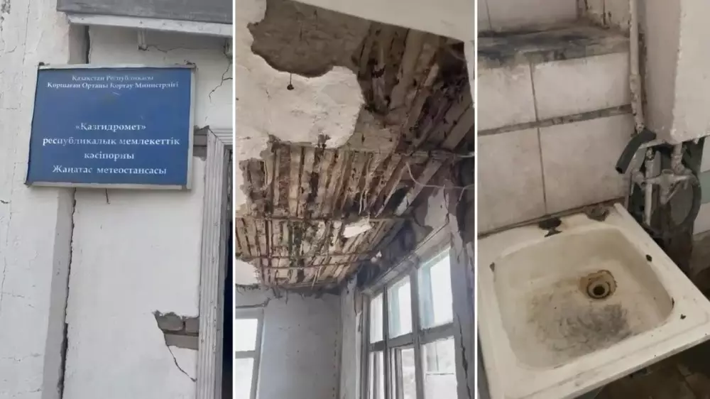 "Это метеорологическая станция РГП "Казгидромет". Вот такие условия труда длятся годами, по закону в таких ужасных аварийных помещениях люди не должны работать. Это очередное происшествие в стране, где люди будут гибнуть. Здесь мы работаем сутками, и в любой момент может развалиться это здание", - утверждает автор публикации, опубликованной сетевым изданием ZTB.