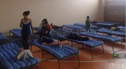 Бизнесмены Алматы организуют сбор помощи пострадавшим от схода селя Эвакуированные люди размещены в здании школы. Фото © Владимир Прокопенко
