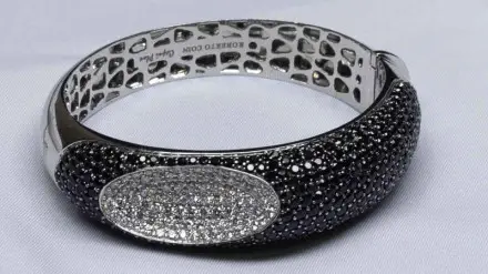 Среди них - браслет "FOPE" из жёлтого золота, инкрустированный 16 бриллиантами и культивированным жемчугом. Вес бриллиантов составляет 0,3 карата. Он продан за 3,5 миллиона тенге.