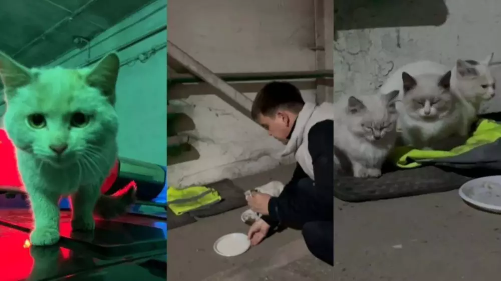 "Я заступил на службу на контрольно-пропускном пункте батальона. Во время дежурства просматривал камеры видеонаблюдения. Поздно ночью заметил, что у ворот мяукают котята. Вышел и открыл ворота, все трое лежали, свернувшись калачиком в снегу. Я взял их на руки и принес в теплый гараж, с коллегами отогрели и накормили. В углу, рядом с батареей, устроили им временное жилище и лежанку. У меня было ярко-лимонного цвета полотенце, и, чтобы сделать пребывание котят немного ярче, я подстелил им в качестве матраца", - рассказывает инспектор службы батальона патрульной полиции УП Павлодара Тимур Жулаев.