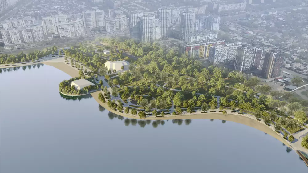 Для создания вокруг водохранилища единого паркового пространства, для защиты парковой территории от шума и загазованности загруженной магистрали города со стороны проспекта Толе би будет создан лесомассив. Вид на озеро останется открытым на западном и восточном входах и на башенном водосбросе с его существующей конструкцией обзорного балкона.