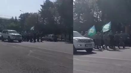 Шествие бывших десантников в честь празднования Дня ВДВ очевидцы сняли на видео и выложили в Сеть. На кадрах видео запечатлено, как люди в форме и тельняшках строем идут по центру Павлодара. Колонну сопровождают несколько автомобилей с включенными сигналами.