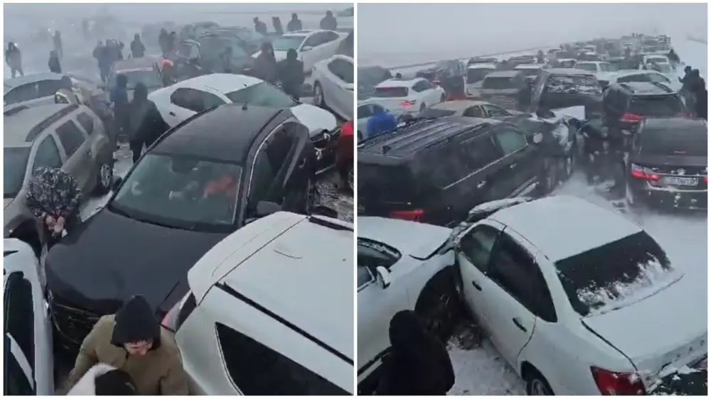 "Однако, по предварительным данным, из-за несоблюдения водителями скоростного режима и безопасной дистанции в 13:28 на 153-м километре трассы, в районе села Жанаталап, произошло массовое столкновение с участием примерно 95 автомобилей", - сообщили в "КазАвтоЖоле".
