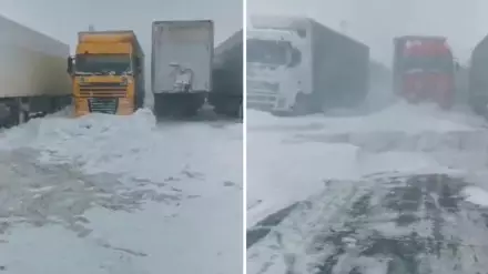 Видео заметенных фур на таможенном посту стали распространять в сети обеспокоенные родственники. Из-за бушевавшей непогоды водители большегрузов оказались в снежном плену. Три дня они простояли отрезанными от цивилизации.