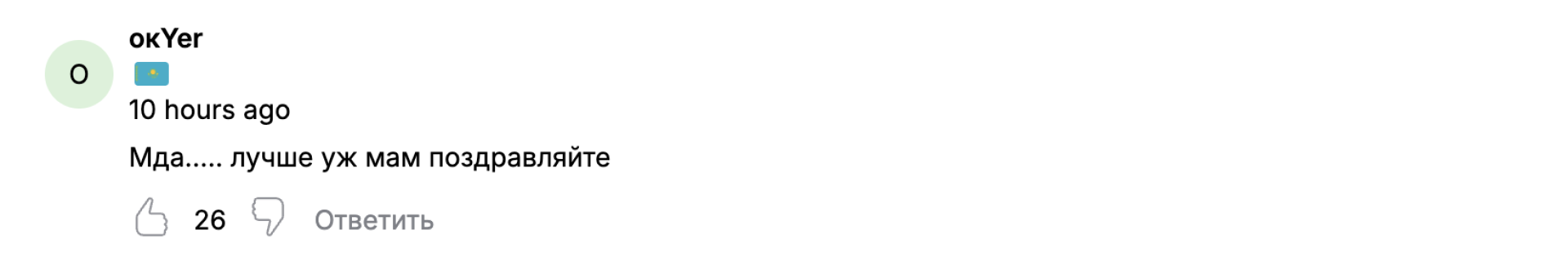 Некоторые комментаторы отнеслись к этой новости с юмором. К примеру, один из пользователей вспомнил поступок депутата Мажилиса Ардака Назарова, который поздравил маму с трибуны.