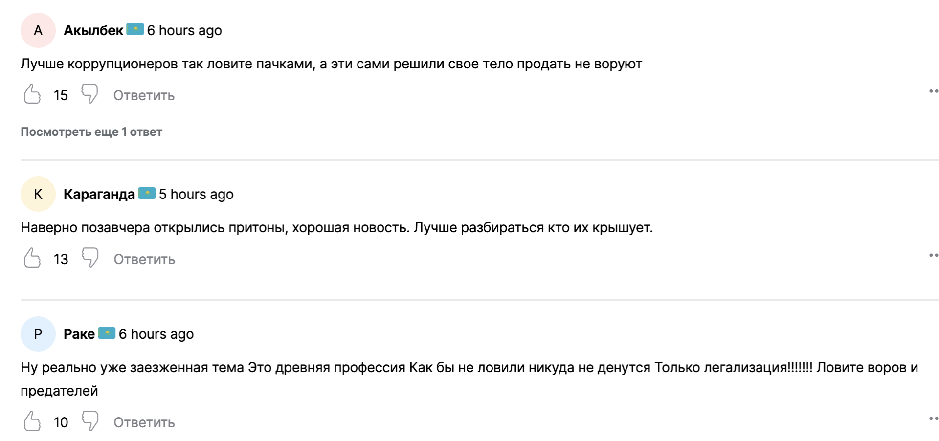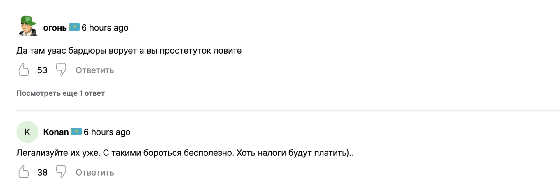 В комментариях пользователи разделились: часть требует легализовать проституцию и брать налоги, другие же критикуют полицию за "имитацию деятельности" и предлагают сосредоточиться на борьбе с коррупцией.