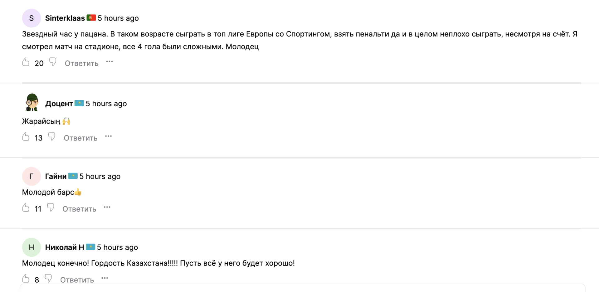 Комментаторы отметили отличную игру молодого вратаря, назвав его гордостью Казахстана и "Кайрата".