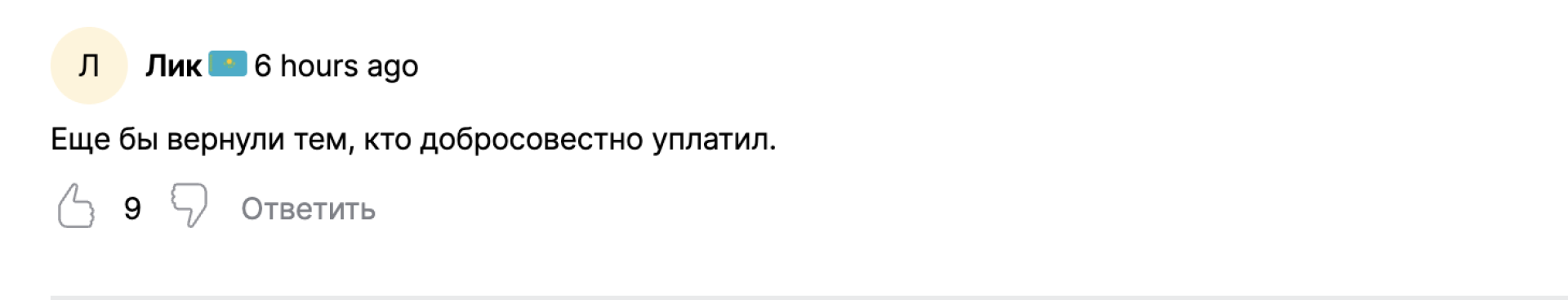 В комментариях под новостью многие читатели Tengrinews.kz пожаловались, что законопослушные граждане, вовремя оплатившие налог, оказались в проигрыше. Вот несколько мнений читателей: