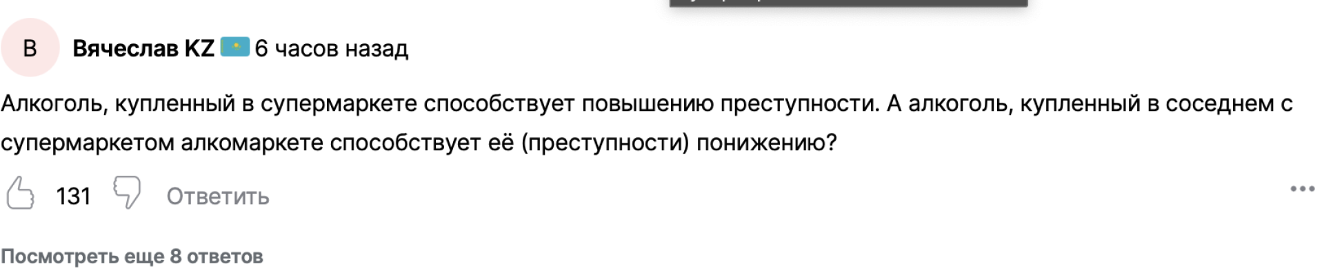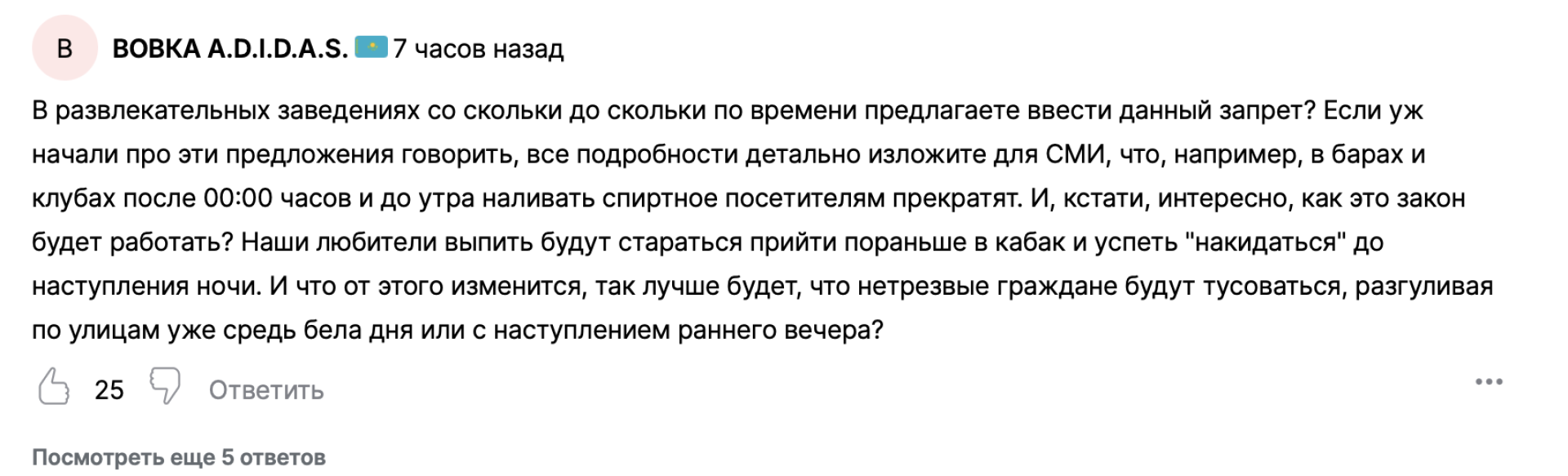 Комментаторы разделились на три лагеря: противники запретов настаивают, что проблему решит не место продажи, а неотвратимость наказания и работа полиции; сторонники ужесточения "двумя руками за", часть требует вообще полного запрета алкоголя; прагматики просят конкретику - чёткие часы ограничений, механизм контроля и ответственность заведений - и предупреждают о побочных эффектах (люди будут "накидываться" раньше, возможен уход в серый оборот).
