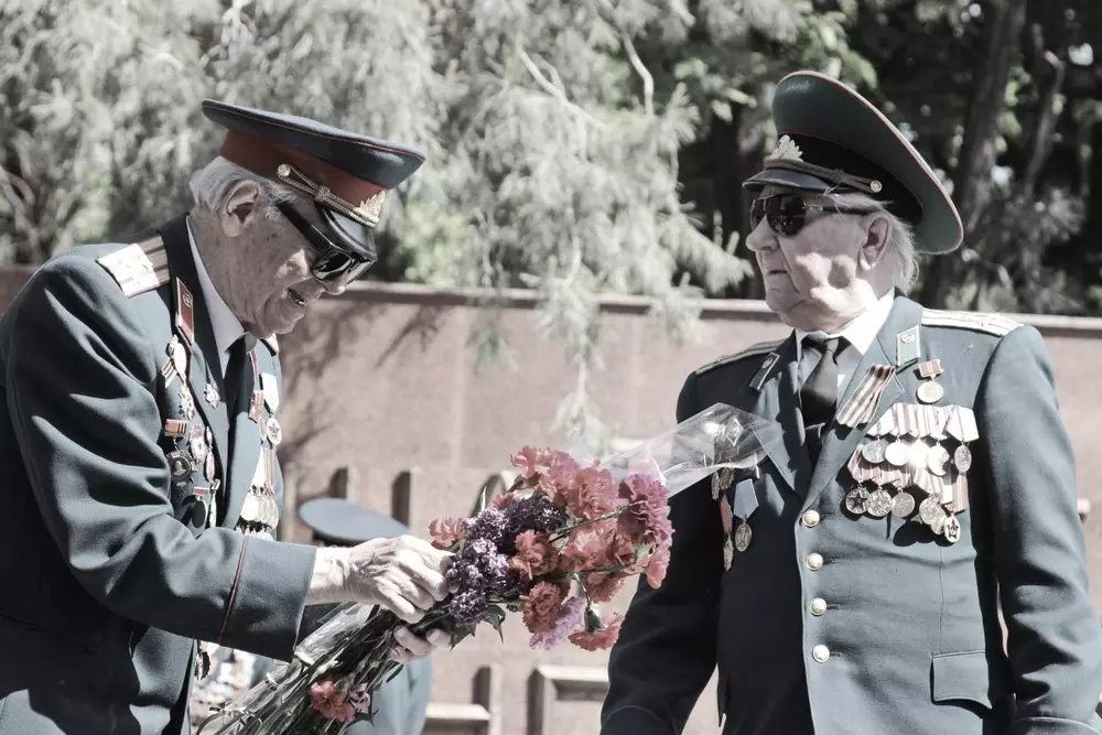 "День Победы для нас - предмет особой гордости и священной памяти. (...) На фронтах сражались 76 тысяч алматинцев, из которых только 44 тысячи вернулись домой. Сейчас в Алматы проживают 1279 ветеранов войны и 23 тысячи тружеников тыла. Молодежь должна равняться на них", - сказал аким города Ахметжан Есимов.