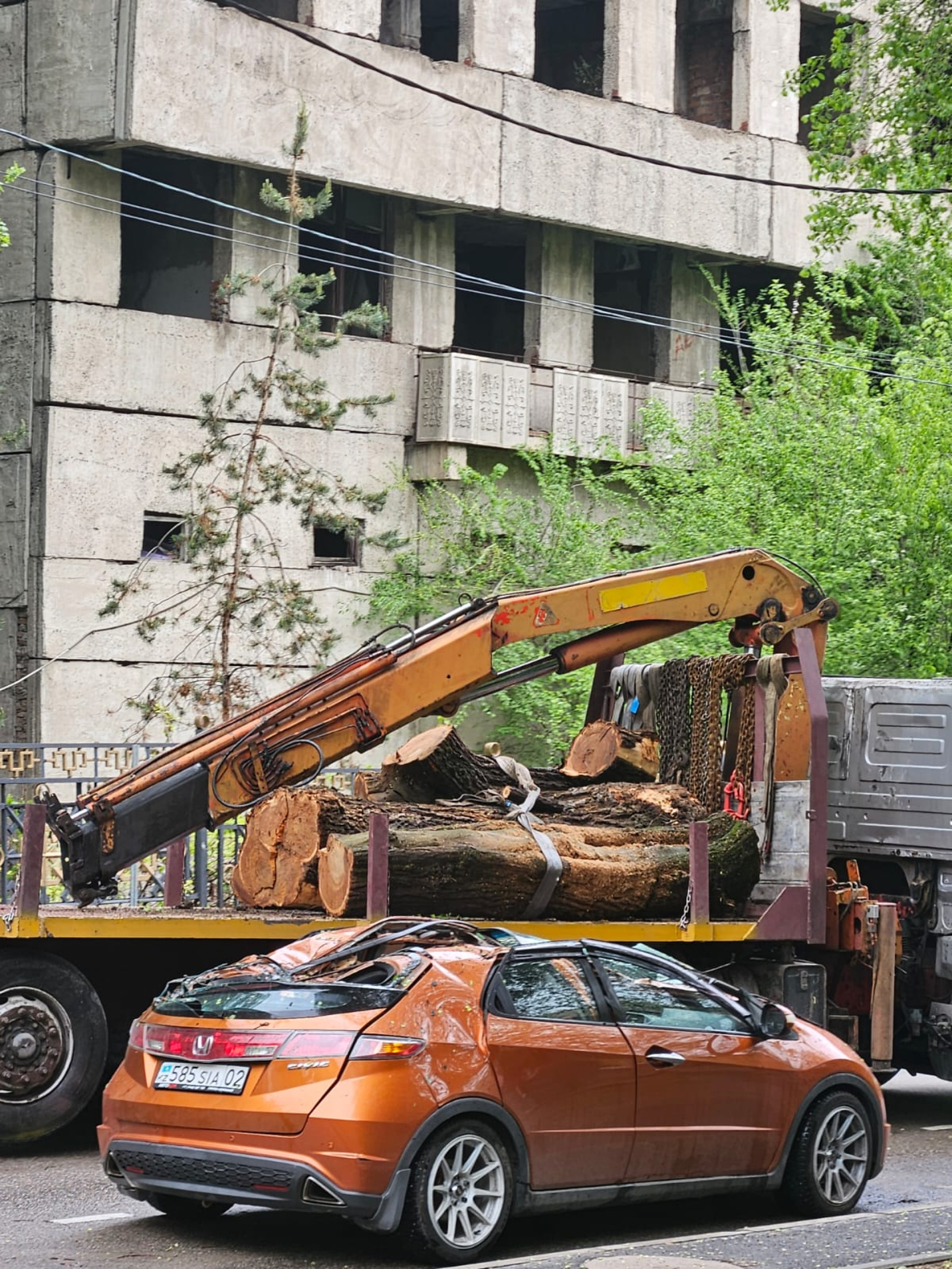 В акимате также отметили, что "последствия падения дерева устранены, произведён распил и вывоз древесины, движение автотранспорта восстановлено".