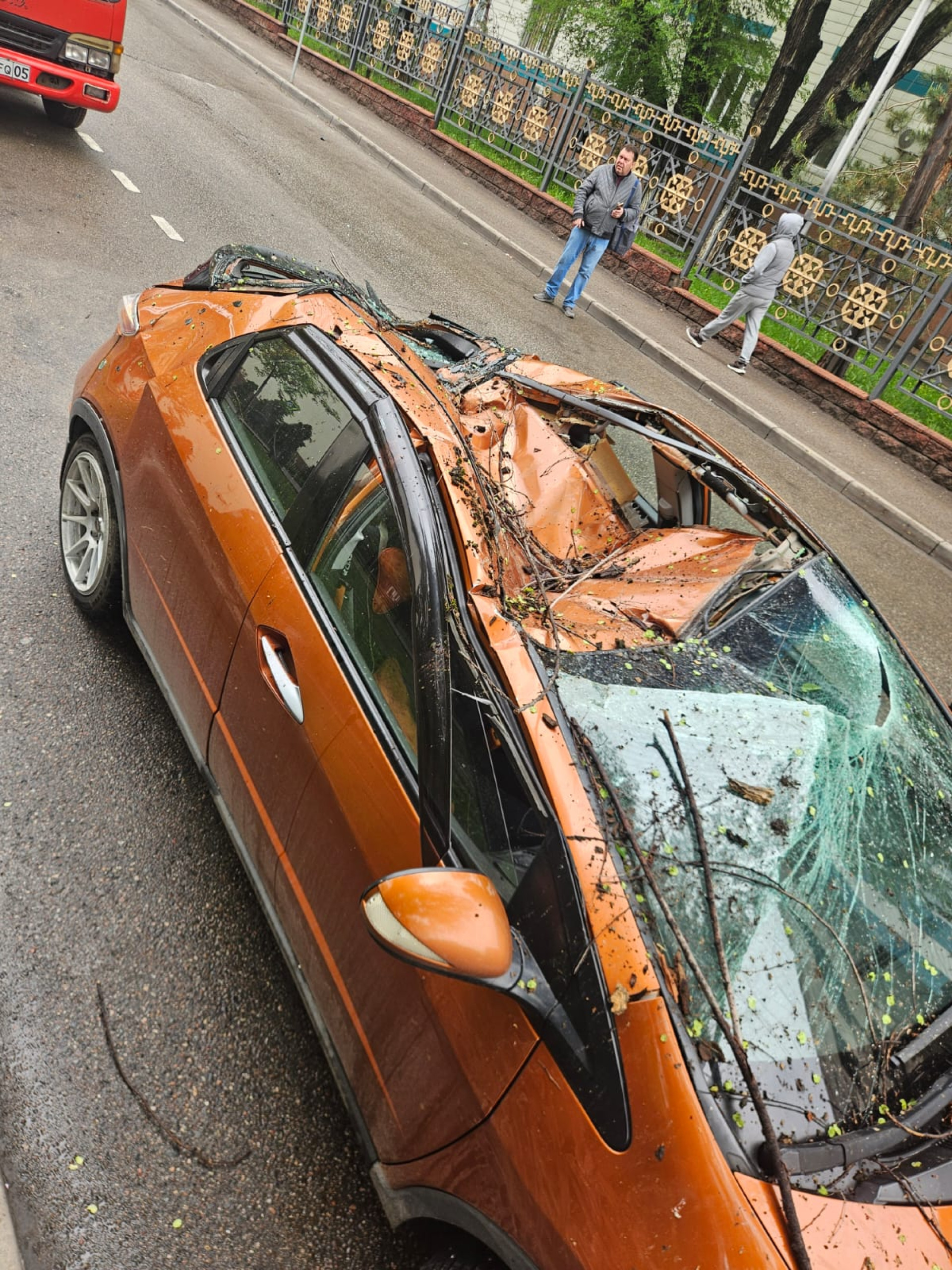 В Алматы дерево упало на проезжую часть и повредило стоявший легковой автомобиль, передаёт Tengrinews.kz.