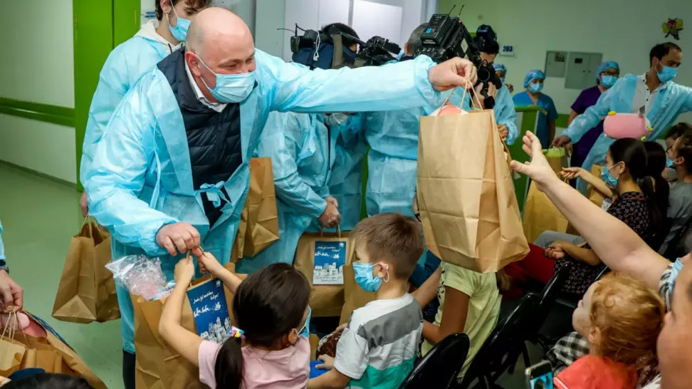 В преддверии Нового года игроки хоккейного клуба "Торпедо", блогеры и представители "Казцинка" посетили областной Центр матери и ребенка (ЦМиР) в Усть-Каменогорске, чтобы передать подарки детям, которые встречают Новый год в стенах больницы. В течение месяца неравнодушные горожане могли передать мягкую игрушку удобным способом: принести на матчи любимой хоккейной команды либо направить презенты через популярного блогера Александру Осипову.