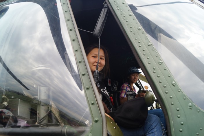 В ходе встречи дети смогли не только воочию увидеть самые современные боевые вертолеты и военно-транспортные самолеты Сил воздушной обороны, но и посидеть за штурвалом боевых машин.
